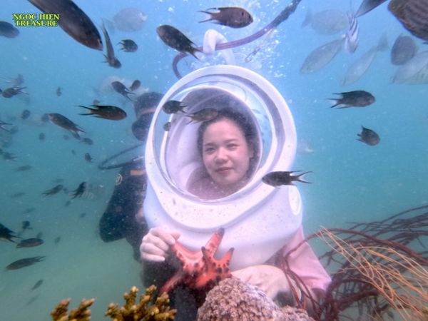 Nếu bạn yêu thích hệ sinh thái biển và tò mò về san hô cùng những loài cá thì trải nghiệm đi bộ dưới đáy biển sẽ khiến bạn thích thụ. Cảm giác đội mũ oxy và dạo bước dưới biển, chụp ảnh cùng những đàn cá bơi xung quanh, giúp bạn hòa mình vào thiên nhiên. Đây là trải nghiệm không quá mạo hiểm, mang lại cảm nhận thực tế lại rất an toàn và hấp dẫn.